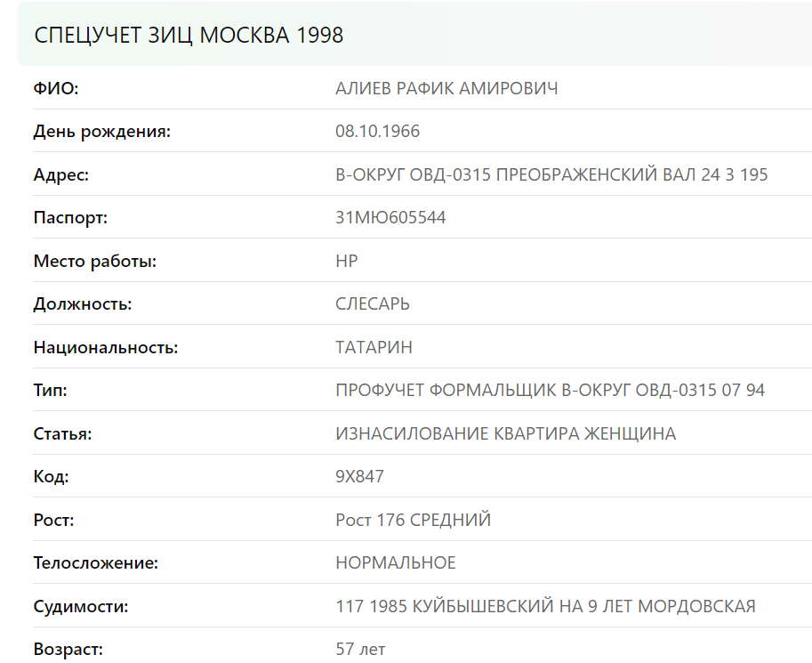 АЛИЕВ РАФИК АМИРОВИЧ 08.10.1966 – отец, уголовник, насильник