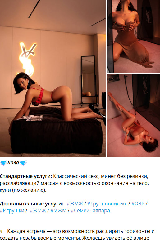 Дополнительные услуги: #ЖМЖ / #Групповойсекс / #ОВР / #Игрушки / #ЖМЖ / #МЖМ / #Семейнаяпара
