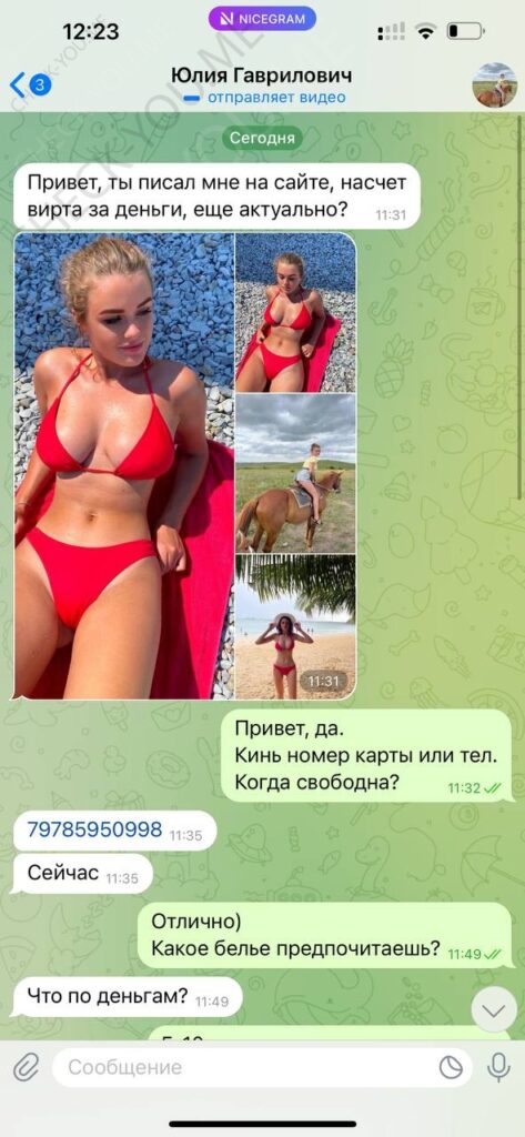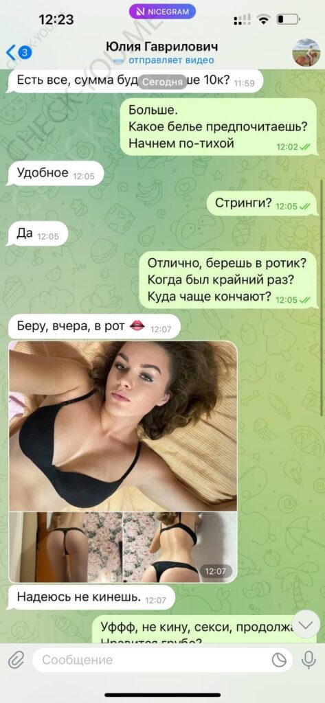 Была не против рассылки и публикации, хотя могла удалить за сумму, которую за неделю тратит, так как считает что деньги важнее всего, а реклама ее секс-услуг принесет ей доп.заработок.