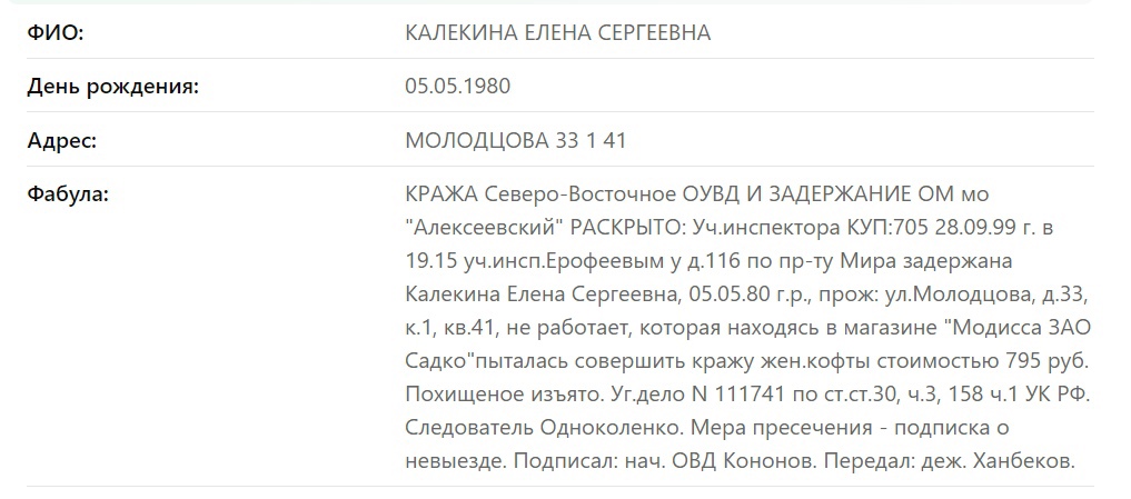 Мать – КАЛЕКИНА ЕЛЕНА СЕРГЕЕВНА 05.05.1980
