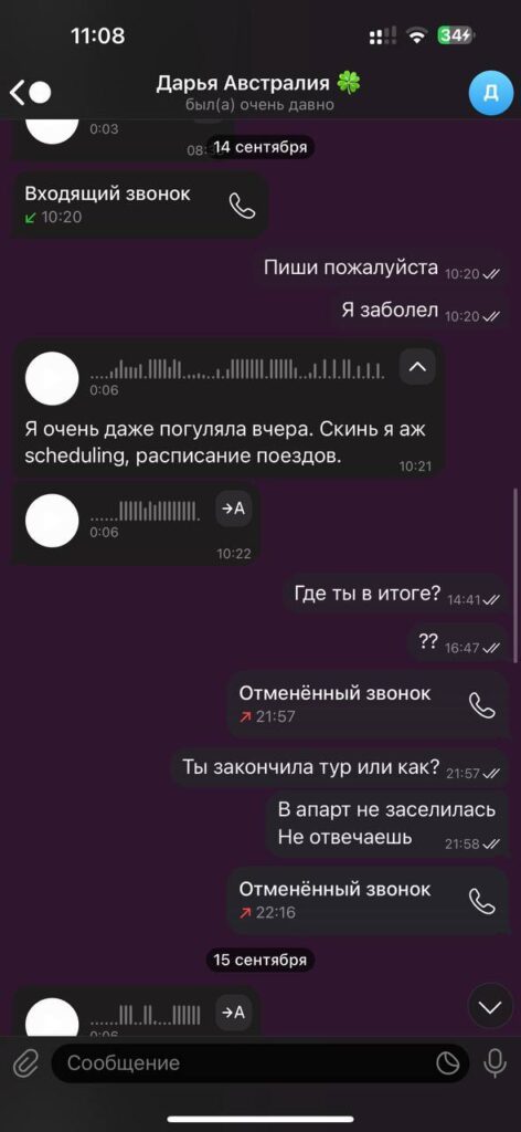 Ко всему прочему, она брала допы с клиентов, не поставив агентство в известность. Когда пришло время рассчитаться, Даша пообещала перевести деньги, но в итоге просто ушла в игнор.