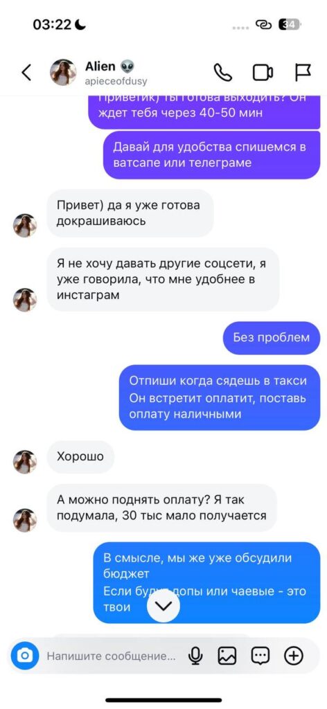 Малолетняя московская шалава, почему-то общается строго через инстаграм.