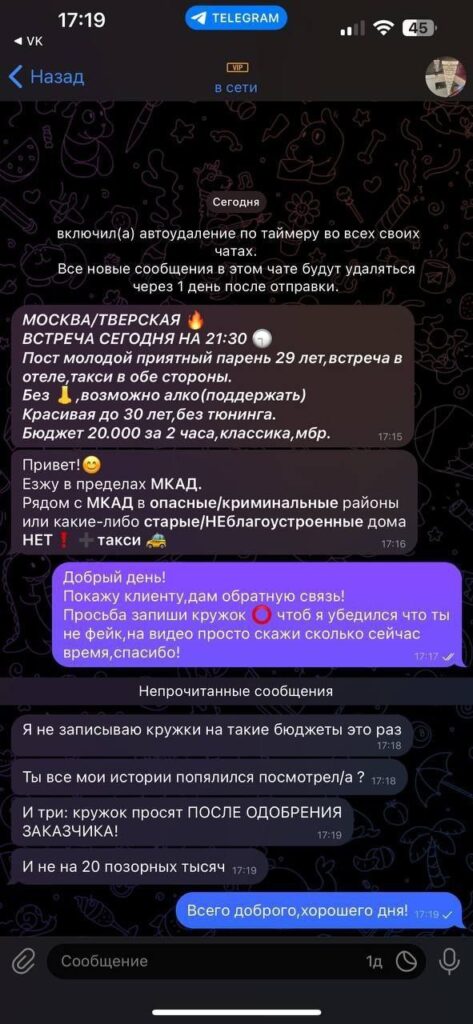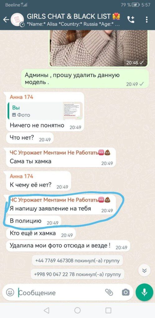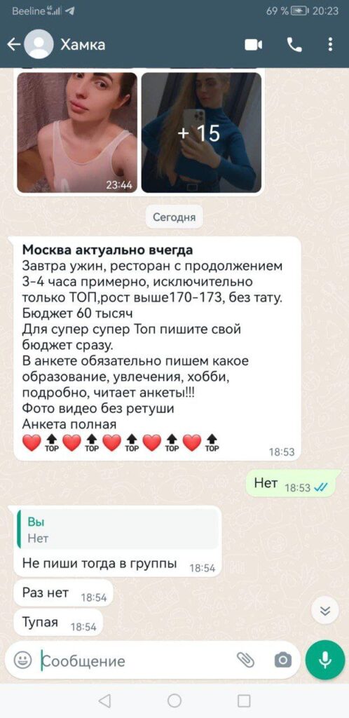 Оксана(ее первое рабочее имя) эскортит уже больше 6лет,но всем говорит что работает 1й год.Начала она в родном Волгограде,где испортила отношения между всеми сутенерами и клиентами и перебралась в Москву.В чс она попадала неоднократно за счёт своей неадекватности,в ее личном деле до сих пор числится неудачное судебное дело с клиентом,который толкнул ее когда отбивался,из-за чего она подала заявление в суд с требованием выплатить 75к компенсации,в чем ей было отказано за отсутствием физ.травм,и выдало только 796руб.Эту схему мошенничества она запомнила и продолжила угрожать всем ментами,но в суд больше не обращалась:боится разоблачения,ведь в глазах близких она порядочная студентка РАНХиГС.Эскортная карьера Олеси из-за неадекватности,постоянных ЧС и нападений на клиентов не задалась и поэтому Олеся набрала 2млн долгов,а другая причина: пагубная алко зависимость,что заметно.Оксана любит скидываться на ТОП предложения,но работает за 2-4к/час